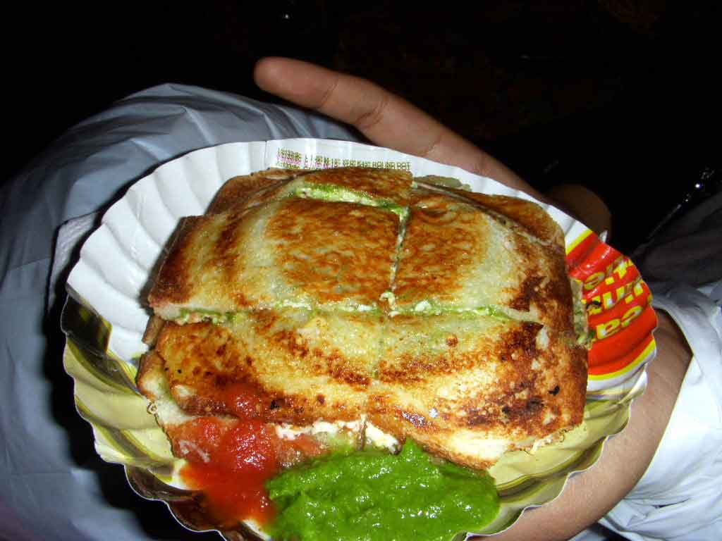 If you’re like me, a sandwich isn’t the first thing that would come to mind when you’re thinking about Indian food. But when it comes to Mumbai street food, a local favorite is the Bombay sandwich, and you’ll find food vendors all over busy parts of the city whipping up grilled sandwiches with expertise.Typically the sandwiches are vegetarian, and they all begin with a couple slices of white bread that are buttered on either side. Then in goes a combination of cilantro and mint chutney, with thin slices of vegetables that can include beetroot, onion, cucumber, tomato, and a layer of masala potatoes, followed by shredded cheese and a sprinkle of chili and cumin.I think the best way to enjoy your Mumbai sandwich is to order it toasted, so you get it hot and fresh, and crispy on the edges. Don’t forget to dip your street food sandwich in more chutney before taking a bite!