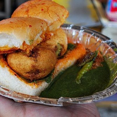 If you take a walk down any street in Mumbai, you’re bound to quickly come across vada pav, one of Mumbai’s most popular and widely available street food snacks.Also referred to as the Mumbai vegetarian burger, vada pav consists of a spiced mashed potato mixture, which is deep fried into a patty, packed into a white fluffy bun, and garnished with a variety of different chutneys and spices for seasoning.Although it sounds rather simple, and it is, it’s one of greatest tasting vegetarian burgers you’ll likely ever eat. The chutney makes all the difference. And also, don’t miss those fried chilies on the side to give you a kick of heat and flavor.